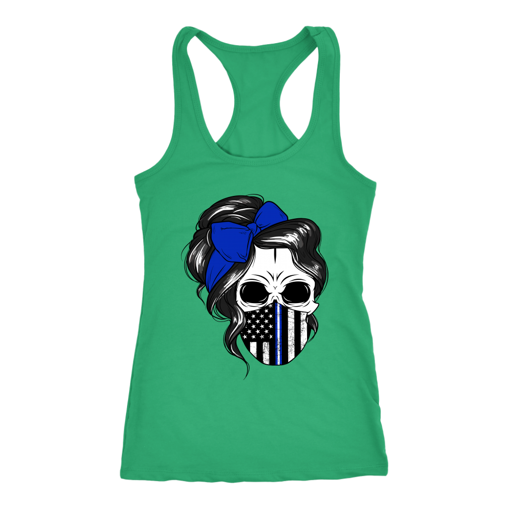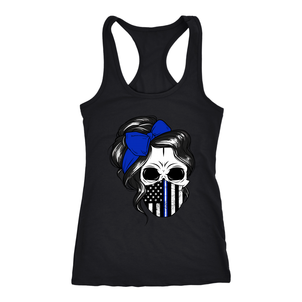Skull with Messy Bun and Police Flag Mask Shirt
